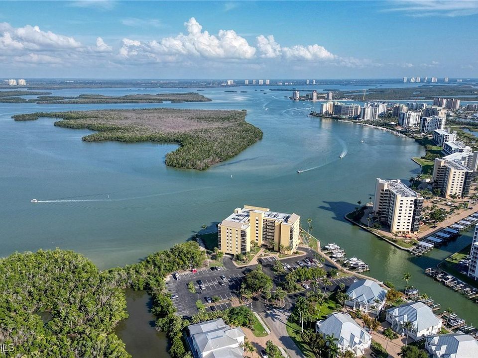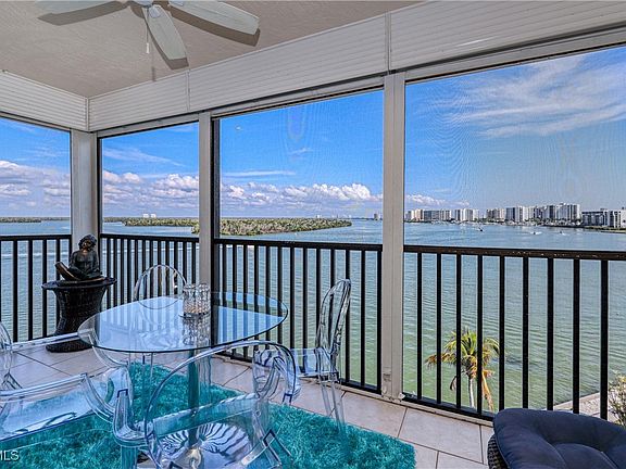 This condo has the most desirable view of Estero Bay at Windward Point! You'll feel like you are on a cruise ship when looking out at the mangrove islands, the dolphins or watching the boats going by. This is a fabulous opportunity to own a beautiful condo that was unaffected by the hurricane. There is new flooring throughout the whole apartment, and it has been painted. There are also two new barn doors that have been installed to provide extra room from swinging doors. The kitchen boasts new cabinetry with stainless steel appliances, gorgeous quartz countertops, two lazy Susan's for extra storage and decorative lighting over the bar. Additionally, new ceiling fans adorn the kitchen, living room and bedroom with wall mounted controls! The living room provides beautiful white leather furniture with two recliners in the sofa and two separate reclining chairs. Plus, there are TV/cable outlets on both walls. The lanai features hurricane shutters for added protection. There is also a table and chairs in addition to two wicker chairs with ottomans. It is a perfect place to have dinner or just relax and take in the view! Windward Point is up and running. You will be close to the beach and also Santini Plaza for shopping and dining. Come take a look - you will not be disappointed!