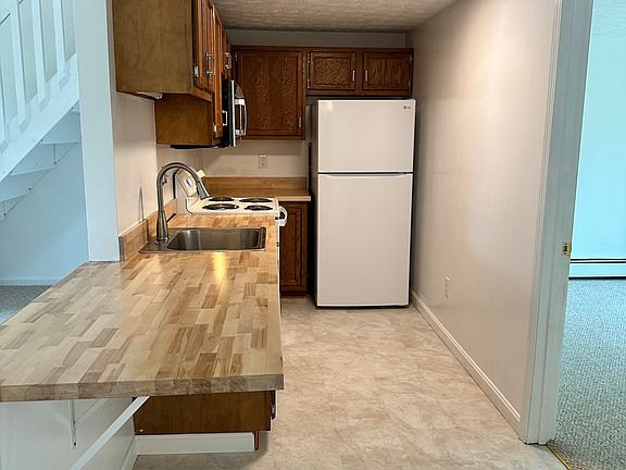 Townhouse style second floor apartment that has just been refreshed with new paint, carpeting, laminate flooring, countertops, and more. On the main level is a large living room, full bathroom, a galley kitchen with bar seating, two bedrooms on main level. Upstairs is a large bedroom. Rent includes heat. Tenant pays for electricity including water heating. Off street parking for two vehicles, household trash disposal and plowing included. Shared coin operated laundry room in adjacent building. 12 month lease, good credit, references and verifiable income. Security deposit equal to two months rent, plus first month to move in. Pets considered on case by case basis, up to two. Small dog considered, under 25 lbs. Twelve month lease with renewal options. Owner pays for heat, cold water, sewer, plowing and trash disposal. Off street parking for two vehicles, tandem. Tenant pays for electricity, (hot water is electric,) and internet if desired. No smoking on the property. Tenant shovels own stairs and balcony.