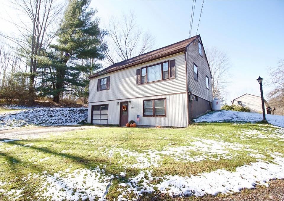 Well cared for Cape Cod snuggled in country setting on almost 2 acres..5 yr old roof. Replacement windows,Fresh paint throughout. Updated Kitchen & bath. Newly finished basement. HWD floors in LR & downstairs bedrooms. New flush mount light fixtures. 3 car detached garage w/ bonus man cave and 2 additional outbuildings.Large deck w/tree fort.Looking for privacy well you found it! Public gas avail.
