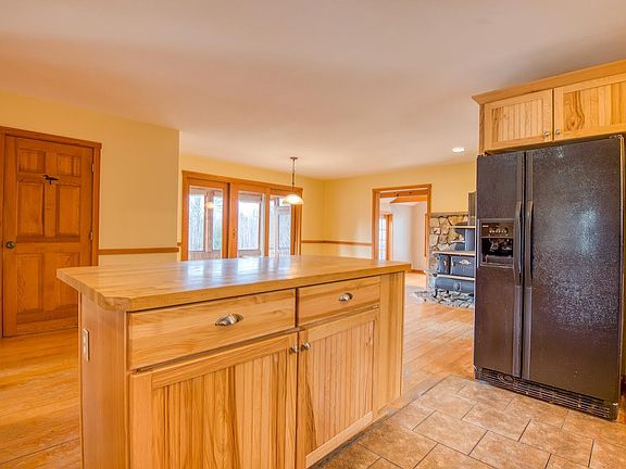 CONTEMPORARY FRYEBURG NEW ENGLANDER SET ON NEARLY FIVE ACRES IN A FANTASTIC CENTRAL LOCATION, yet just off the beaten path. The main level features a cooks kitchen with hickory cabinets, Corian countertops, and center island with butcher block top and opens to a casual dining area that includes a wood cookstove and stone hearth. There is also formal dining area with a kitchen pass-through, which could also serve as a sunny study to enjoy your morning coffee. Two living areas, both sunny and bright; one large and more formal living with an Jotul woodstove; the other a cozy sunken studio area, comfortably open to the kitchen. The first floor also includes a 1/2 bath and practical mudroom entry. The upper level hosts a large master bedroom with bath and laundry, large second bedroom, smaller third bedroom, and full bath. Plenty of room to expand into the lower level with two partially finished rooms (needs flooring), utility room, and workshop space. Excellent outdoor living with deck, screened porch, and ample room for gardens. Detached two car garage and carport offer plenty of storage. Potential for a small farm, as there is a modest barn with stalls suitable for smaller animals, and some pasture. Lined and threaded with stonewalls, this property is just down the road from the Mt. Tom Preserve and Bog Pond. All within 20 minutes of the White Mountains/North Conway and the Lakes Region/Bridgton for shopping, trails, skiing, and amenities, and just a short drive to Fryeburg.