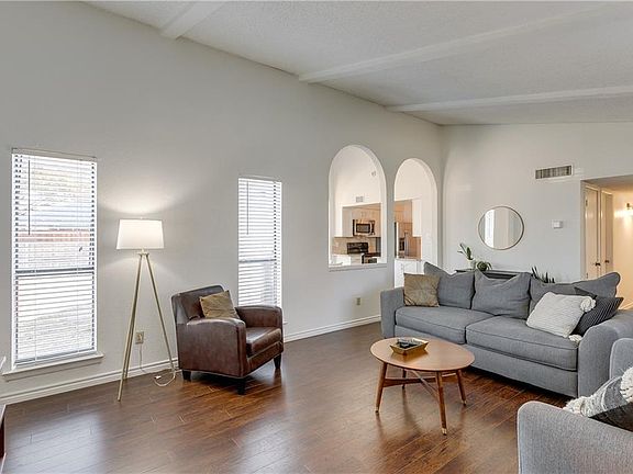 BACK ON THE MARKET! Buyer terminated before any inspections were done. UPDATED 3 bedroom home on huge corner lot with vaulted ceilings! Wood floors in living room, kitchen, breakfast nook & hall. Tile floors in den & baths. Kitchen features granite tops, tumbled tile backsplash, stainless steel appliances including built in microwave & a breakfast bar. 2nd living space has brick wood burning fireplace & vaulted ceiling Large back yard has wood fence & front yard is shaded by a mature oak tree. Recent HVAC system fully replaced!