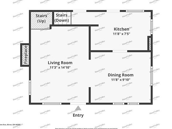 This charming home in Akron, Ohio offers 2 bedrooms and 1 bathroom on a 960 sq. ft. lot. The front yard features a nice grassy area, and wooden fences provide privacy for the backyard. There's a driveway for outdoor parking and a detached garage at the back. Inside, the home has wooden flooring in the living area and kitchen, with a classic fireplace in the living room. Open cabinets and drawers provide storage space for your TV and other items. The updated kitchen includes stainless steel appliances and a functional countertop. The stairs to the second floor are carpeted, leading to the bedrooms, and the basement offers additional storage. A simple, comfortable home with practical features, ready to move in and enjoy. Schedule your tour today this home wont last long!