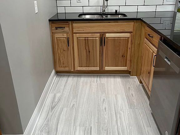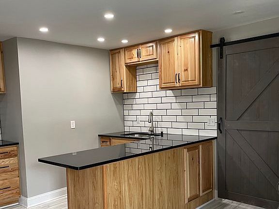 This beautifully updated 1-bedroom, 1-bath duplex is located just one block from historic downtown Harrisonville. The home has been completely renovated and features new luxury vinyl plank flooring throughout, LED recessed lighting, ceiling fans with remotes, and a high-efficiency mini-split heating and cooling system. The modern kitchen offers custom granite countertops, updated cabinetry, island and stainless steel appliances including a stove, microwave, dishwasher, and refrigerator. A tankless water heater provides endless hot water, and a full-size washer and dryer are included for your convenience.