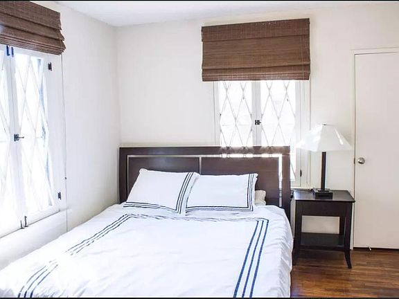 This is a beautiful 2 bedroom 1.5 bathroom unit on the bottom floor of a duplex. It is located in a very quiet neighborhood of Beverly Hills. The entire unit has original hard wood flooring, with plenty of natural sunlight coming in. Both bedrooms are very large, which share a Jack and Jill bathroom with a standing shower. There is also an additional powder room in the living room. The kitchen includes a microwave, stovetop oven, refrigerator, and plenty of cabinet space to store your pots and pans. Each room has its own individual AC unit. This unit also includes 1 parking space. The duplex is close to The Beverly Center, Walk of Stars, Cedar Sinai Hospital and all the tech firms in BH.