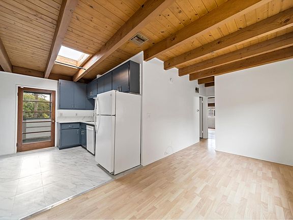 Spacious unit with 2 large bedrooms (one master suite) and 2 full baths in a wonderful prime A++ location in Beverly Hills! Featuring original hard wood floors, wood beam ceiling throughout, remodeled kitchen, updated bathrooms, sunroom off the kitchen, skylight, small yard, and a bonus room perfect for home office or studio. This unit is very private and drenched with natural sunlight. Other features include central AC, storage space, laundry room, and two parking spots. Within walking distance to all the nearby Beverly Hills shops and restaurants.