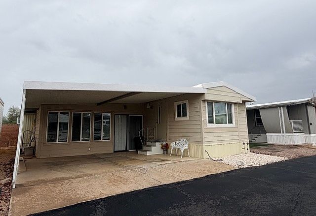 This 320 square foot Park Model home at The Reserve at Lost Dutchman in Apache Junction, AZ was built in 1982 by Villa. The cozy home features 1 bedroom and 2 bathrooms, with a spacious living room, kitchen, and an Arizona room for enjoying the desert views. The exterior includes a carport for convenient parking, while the interior boasts modern appliances such as an oven, fridge, microwave, washer, dryer, hot water heater, and central A/C for comfort all year round.The Reserve at Lost Dutchman is a charming community with stunning views of the Superstition Mountains. Residents can enjoy amenities such as a clubhouse, swimming pool, and fitness center, as well as organized activities and events. The community is conveniently located near shopping, dining, and recreation options, making it the perfect place for those looking to enjoy the beauty of the Arizona desert while still being close to city conveniences.