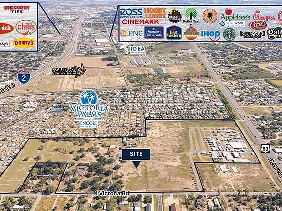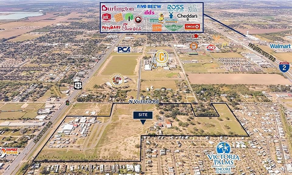 This prime 43.34 acre tract on Victoria Road offers exceptional visibility and convenient access to Interstate 2. Surrounded by major national retailers, the site sits just minutes from Cinemark, Walmart, and multiple high-traffic shopping plazas. Its strategic location puts it at the heart of a bustling commercial corridor, making it ideal for retail, mixed-use, or future development.