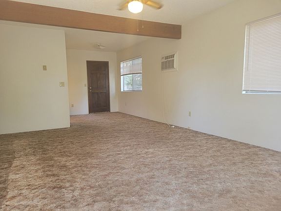 Tentatively available early February. No pets allowed. This charming ground level apartment includes carpet throughout a kitchen with a range, refrigerator, and dishwasher, two bedrooms, one bathroom, laundry hookups, heating provided by baseboard heat, and a wall AC unit. Parking accommodations include a carport, landscaping is provided by the owner, and water, sewer, and garbage are included. Tenant is responsible of all other utilities and services.