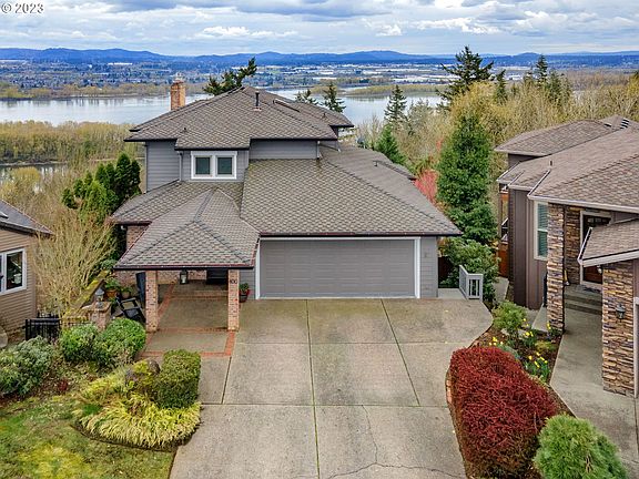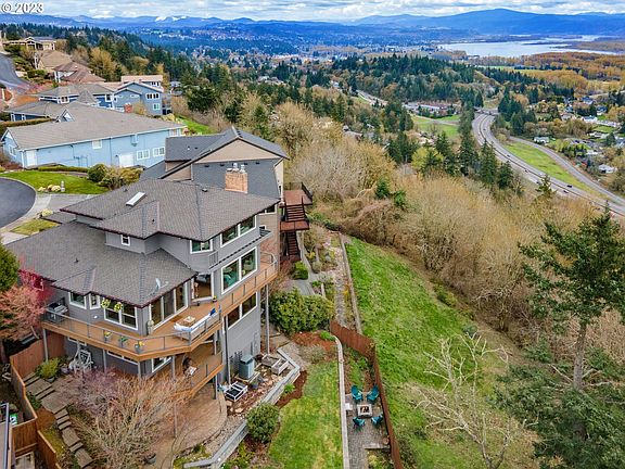 Welcome home to View Ridge. Amazing panoramic views of the Columbia River and Portland skyline await you... Nestled at the end of a cul-de-sac and surrounded by acres of green space. Enter the main level with living room, dining room, kitchen, eating area and powder bath all with oak hardwood flooring. The kitchen has been updated with painted cabinets and stainless steel appliances, including gas cooktop, built-in oven and combination microwave/convection oven. Imagine cozy mornings in front of the fireplace watching the wildlife and taking in the view. Enjoy evenings out on the deck watching the beautiful sunsets. Head upstairs to the primary suite and take in more of the panoramic views while lounging in front of the gas fireplace. A spacious walk in closet and ensuite bath with jetted tub and walk in shower complete your private hideaway. The lower level has a family room/den, 3 bedrooms, a bath and laundry room with another beautiful deck to enjoy the views from. Take a stroll out to the backyard from the deck and enjoy nature, do some gardening in the raised beds or just relax by the firepit. The approximately 400sqft heated workshop is accessible from the back patio and has plenty of additional storage under the house as well! Serenity awaits, so make an appointment to tour this home and make it yours!
