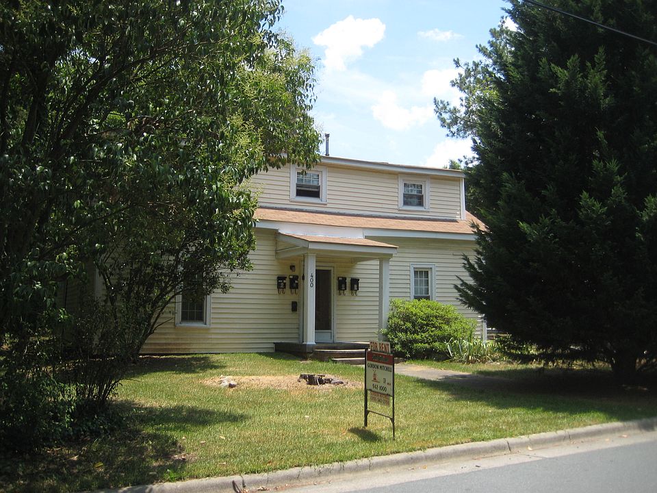 1 Bedroom Apartment, 400 Oak Avenue, Carrboro. NEAR CARR MILL MALL & THE FARMERS MARKET This old home was divided into 4 apartments many years ago. This structure was built as a one-story home about 1910. It originally displayed a tall hip-roofed form with a center hall, two-rooms deep on either side. Hearsay is that the second floor was added after WWII, and that the upstairs rooms had 4 GI's each, attending UNC on the GI Bill. The house was extensively renovated around 1990. It was totally rewired, insulated, replacement thermopane windows added, etc. However, much of the old character, crookedness and charm remain. Downstairs apartment # 1, 400 Oak Avenue On the left side as you face the house, this apartment has access from the central hall via the front door, or the kitchen back door. There is a small but pleasant back yard, with woods beyond. This apartment consists of two large rooms, a kitchen and a bathroom. Gas heat, window AC. High ceilings with ceiling fans. Stove and refrigerator provided. There is no washer or dryer or connections on the premises. Prefer one person, and absolutely only one car. Parking in the rear. Rent includes water and sewer, and hot water. Good Credit required, and one month's rent for deposit. Present building residents are long term. $850 per month. Oak Avenue runs parallel to North Greensboro St. off of Weaver Street. Owner pays for water, and hot water. Tenant pays for gas and electricity. Year lease. Other residents quiet older people. Only one car per apartment. No smoking in apartment.