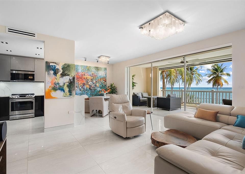 Marbella Club 423 – Oceanfront Condo with Full-Scale Renovation and Smart Technology Positioned directly on the beach at The Marbella Club in Palmas del Mar, this 2-bedroom, 2.5-bath condo has undergone a total transformation completed in 2023. Every surface, system, and detail has been reimagined with longevity, luxury, and performance in mind. Inside, you'll find large-format porcelain tile floors with commercial-grade epoxy grout, recessed tile baseboards with a modern shadow line design, premium Level-5 drywall finishes, and walls coated in Benjamin Moore Aura paint. All doors are solid wood with custom hardware and a marine-grade varnish finish. The open kitchen features Calacatta Mystic quartz counters with waterfall edges and full backsplash, custom acrylic cabinetry, and a layout designed for entertaining. The primary suite is a retreat with ocean views, a floating double vanity with vessel sinks, quartz countertops, LED mirrors, frameless walk-in shower, and a soaking tub placed on a raised platform. The space is enclosed by a privacy glass barn door and includes a remote-controlled privacy shade and a separate modern bidet toilet with remote. The second bedroom functions as a lockout unit and includes a Murphy bed, an en-suite bathroom with walk-in shower and bench, a floating vanity, an under-counter refrigerator, a convection cooktop, built-in microwave, and a workspace for two. The layout is ideal for hosting guests or remote work. Additional interior features include three ducted dehumidifier systems with Wi-Fi control, three independent HVAC systems with digital thermostats and Wi-Fi access, two tankless water heaters connected in series, a new electrical load center with added lighting circuits, a reverse osmosis filtration system at the kitchen sink, designer lighting, curated artwork, and high-end furniture throughout. The living room and bedrooms include LG flat-screen TVs, with a Sonos and Meridian Audio sound system in the main living area. Smart home systems include remote-access smart locks, four high-resolution security cameras with two-way audio and local recording, leak detectors with real-time phone alerts, a dual-camera smart doorbell, and a full fiber-optic mesh Wi-Fi system. The balcony features a European motorized screen for insect protection and sun control. The living room door system has been raised for better water runoff and includes a new motorized hurricane shutter with reinforced removable components. Motorized shades in the living room, primary bedroom, and bath allow for privacy without losing the view. The Marbella Club offers direct beach access, two beachfront pools, a fitness center, 24-hour security, elevator access, and beautifully maintained tropical landscaping. Within Palmas del Mar, residents enjoy access to two golf courses, a tennis and pickleball center, an equestrian facility, a full-service marina, restaurants, shops, and over five miles of golf cart paths. The Palmas Academy, located within the resort, is a top-rated private college-preparatory school offering a full English curriculum from Pre-K through 12th grade. HOA fees are $659.00 per month for Marbella Club Regime and $1,300 annually for the Palmas del Mar Master Association.
