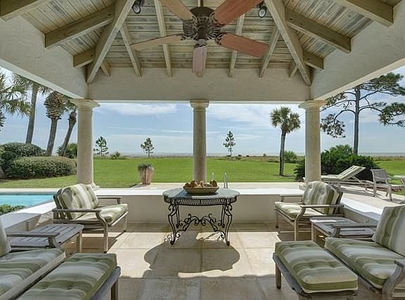 A fun, carefree and delightful way to live on Sea Island: a townhome on the beach. Built on 1 1/2 lots within the gates in the private and protected world of Ocean Forest, this home reflects the love and caring of family ownership, tastefully decorated (and furnished) and custom built with the highest standards. Directly on the beach w/ a short path through the dunes, the pleasures of the Atlantic Ocean and beach await you just beyond your private pool. 6 BR, 8.5 BA, ample social areas. Open kitchen w/breakfast area plus fully equipped bar. Dining area w/ 3 tables set up to easily seat 16. Living room w/fireplace plus den w/ fireplace, both on the view side with pool and lawn access via a covered porch. Exercise room w/ full bath. Excellent uses of stone, marble and wood throughout the residence. Elevator. One of the best locations on Sea Island. $4,995,000 unfurnished.