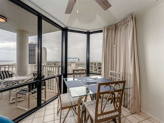 The sellers call this beautiful 2 bedroom condo the "LAUNCH PAD" because of it's EXCELLENT LOCATION AND SPECTACULAR VIEWS OF SPACE X. Kitchen has just been updated with new counter tops. The complex offers 24-hour security with a gated entry, three swimming pools, tennis courts, shuffleboard and pickle ball, The complex also offers an outdoor snack bar and beverage hut. South facing Balcony with incredible views of Space X, Ocean, and Ship Channel.