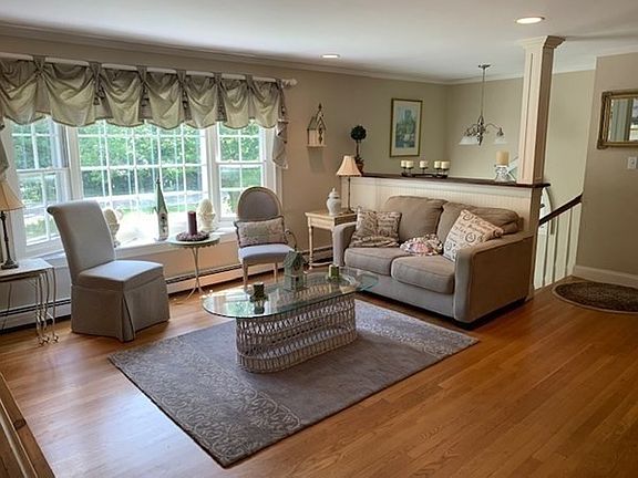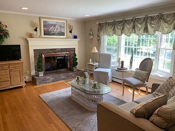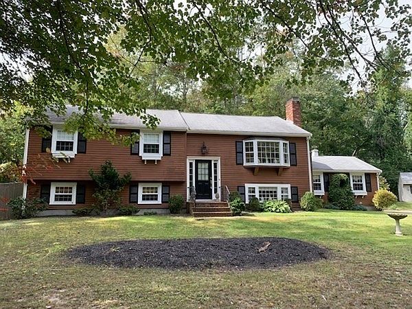 Beautiful home on an acre of land abutting conservation land on two sides and featuring professional updates and finishes. There's a pretty fireplaced living room open to a huge updated kitchen with custom cabinets, granite countertops and a large center island. There's a sunny dining area with transom windows and a French door leading to the deck. Finishing off the main level there is a recently remodeled full bath and three bedrooms (one with a half bath) and there's hardwood floors and crown molding throughout. The finished lower level offers great extended family space featuring a huge family room with a second fireplace and built-in bookcases, another spacious bedroom and a full bathroom. The heating system and oil tank have been been updated. There is an attached one car garage and a shed. This is a great central Marshfield location. Don't miss out!