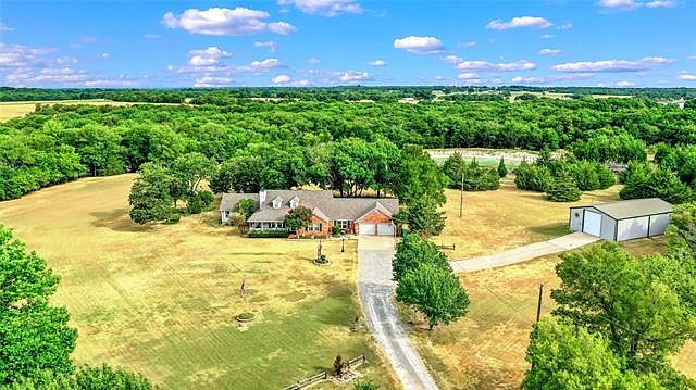 Beautiful 2 story country home with wrap around porch & shop on 3.83 acres. Inside this spacious home are 2 lg. living areas, 2 dining areas, & 4 bedrooms, the one off the master is currently used as an office. The jewel of this home is the open concept living area with walls of windows that bring the outside in, a fireplace, built in shelves, & a vaulted ceiling with beams. The master with en suite, has a window seat, opens to a sunroom that is hot tub ready overlooks a coy pond with waterfall & shady private backyard. An eat-in kitchen steps out to a patio & gazebo. Upstairs are 2 bedrooms, a cozy nook bed, & a full bath. The 30x50 shop has water & electric. Hurry, this beautiful retreat wont last long!