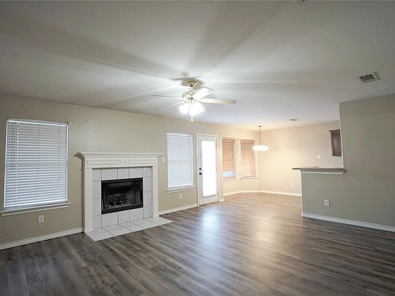 $500.00 off move in! This home features an open floorplan with a split bedroom arrangement. Living area has wood burning fireplace. Primary bedroom has private bath with double vanities, separate shower, and tub. The kitchen has black appliances and good workspace. Secondary bedrooms are nice sized with ceiling fans. Large backyard with open patio and a double side gate. Pets accepted on a case by case basis.