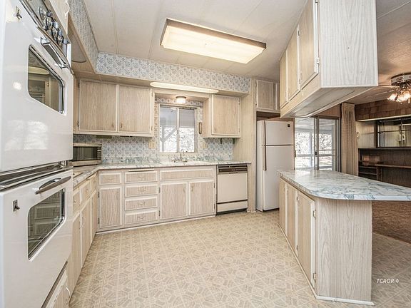 - Interior Features: Window Coverings, Guest House, Flooring: Carpet, Wood Stove, Ceiling Fan(s), Flooring: Linoleum/Vinyl, Countertops: Laminate/Formica, Countertops: Other