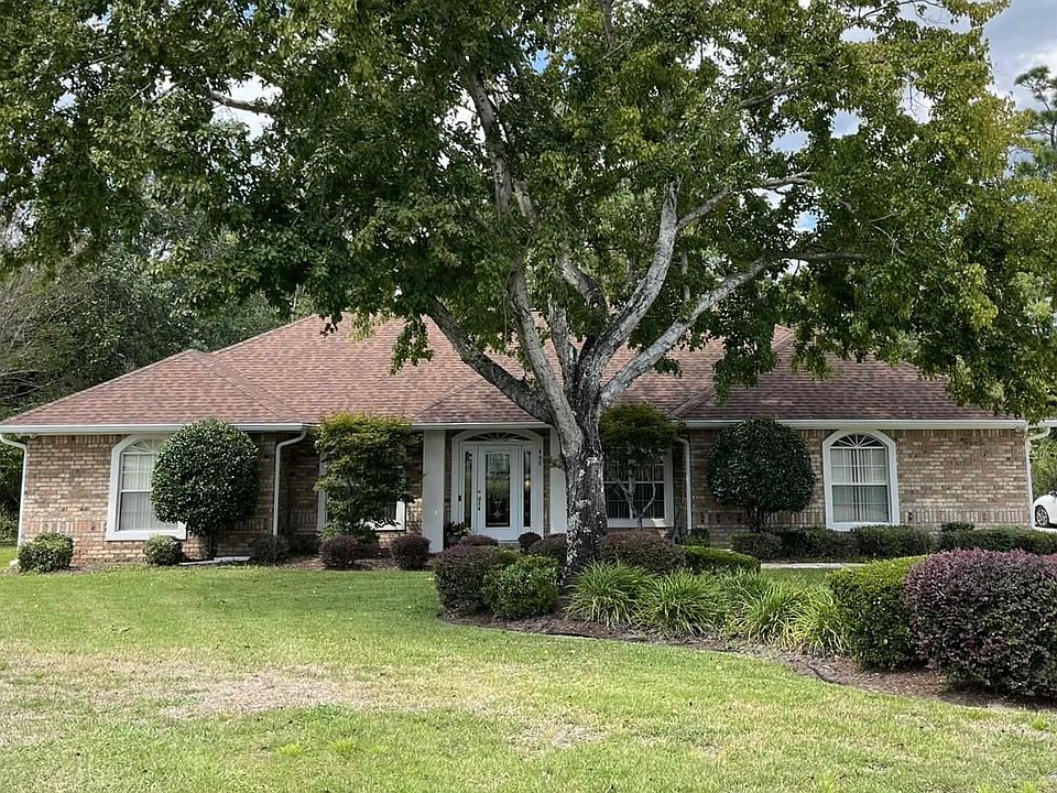 Nice split plan 3 bedroom, 2 bath plus office/study on 1.4 acre lot! Master suite has huge walk-in closet, garden tub, separate shower plus water closet. Crown molding throughout. Eat-in kithcen has granite countertops and modern stainless appliance package. Formal dining room and large family room with gas fireplace. There is a spacious covered back porch overlooking the private backyard with wooded greenbelt & stream. Sprinkler on a well, newer roof and water heater.