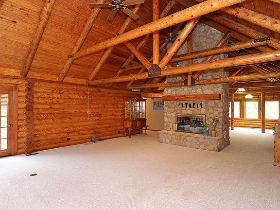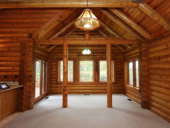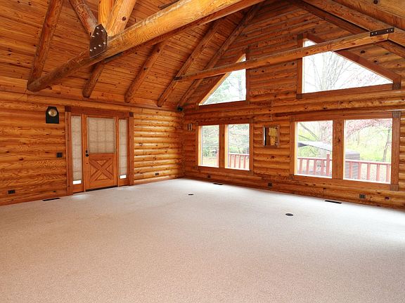 Amish built log cabinSurrounded by treesGenerous plot of landWrap around deckVaulted ceilingsBacked by burnett creekSpacious primary bedroom