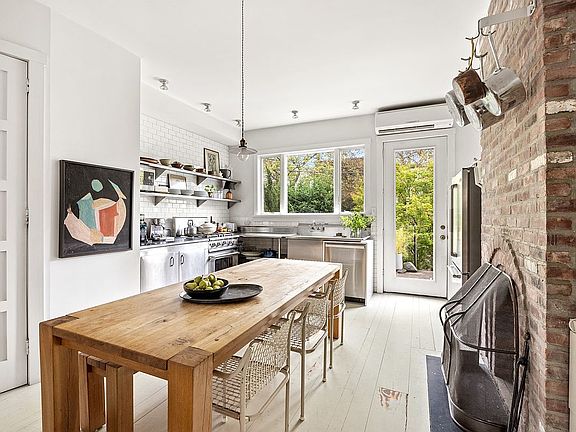 The parlor level is stunning, open, light and airy. It showcases a smart mix of modern design and restored original details. Custom millwork adorns one wall -- offering stylish storage galore. A divine layout, with room for two seating areas and a large dining area. The home’s open kitchen is on the parlor as well. It is expansive with top-of-the-line, stainless steel appliances. A row of rear windows lets the afternoon sun stream in. A wood burning fireplace on this level amps up its charms. There is also a powder room on this level.