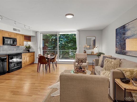 Move in ready spacious one bedroom condo in Myers Park with large balcony that is very close to uptown Charlotte. If you like an open floor concept, then this is a perfect place for you. The large glass door separates the indoor and outdoor space, yet it lets all the light into the living room, dining area and the kitchen. This private balcony is the perfect place for your morning coffee or afternoon wine. Hardwood floors throughout, tile floor bathroom with walk-in shower, granite countertops with custom cabinets. Walk-in closet with ample storage. This unit has been completely renovated with in unit washer and dryer. Convenient location only minutes to uptown. Walking distance to shopping, restaurants and greenway. Parking lot is in front of the condo building. Refrigerator, washer and dryer will convey. Heat pump was replaced in summer of 2019 and hot water heater was replaced in 2015. Inspection is done and all repairs are finished.