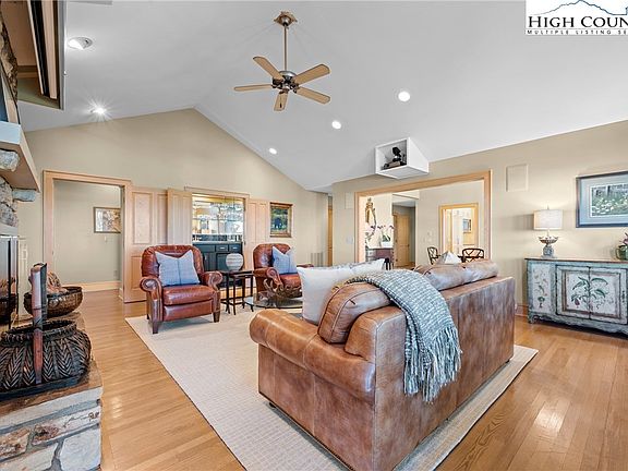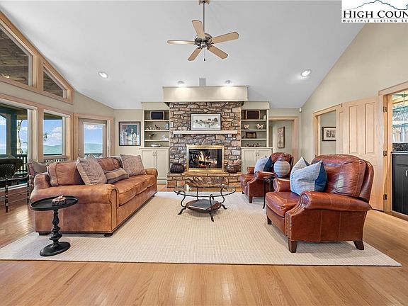 Welcome to sweeping 180 degree, long range, layered mountain views which set the tone for this exceptional luxury home, affectionately named “Suite Carolina!” In an unbeatable location, just minutes from both Blowing Rock and Boone, this home was designed to showcase Blue Ridge vistas from nearly every room. Blending refined comfort, generous space, and timeless mountain elegance, the thoughtfully designed floor plan offers seven bedrooms, including six private suites each with its own bath, with two primary suites on the main level. Perfect for entertaining or relaxing in style, the home features a chef’s kitchen with abundant custom cabinetry, large island with prep sink, and top of the line appliances, truly a dream for any culinary enthusiast. Gather in the dining room or one of two living areas, each graced with its own fireplace. Four wet bars throughout the home make hosting effortless. Expansive decks span the full length of the home, offering both sunny and covered areas, with French door access from five of the seven bedrooms. The setting is ideal to take in breathtaking sunsets and the incredible views stretching to Beech Mountain, Grandfather Mountain, Appalachian State University and beyond. Outside, the property features plenty of outdoor living with flat lawn areas, mature landscaping, and accent lighting to enhance its beauty after dark. Additional highlights include an oversized two car garage, semicircular driveway, and ample parking for guests and gatherings. Full walls of windows and French doors, fill the rooms with natural light and gorgeous views! Furnishings are tastefully selected and negotiable. Designed for both luxury and livability, “Suite Carolina” is the ideal mountain escape, whether you’re seeking a private sanctuary, an entertainer’s paradise, or the perfect blend of both.