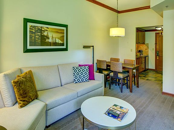 Fantastic opportunity to own a rare and unique luxury one bedroom walk out condo. A sliding glass door to patio and grassy area and a separate living room/fireplace, this is one of only 2 condos that have walk out/patio ability on the 1st floor. Ceiling height is higher on the first floor which makes a noticeable difference. Ski-in ski-out, ice skating, fitness center, valet, restaurants, year-around outdoor pool, in-ground hot-tub/spa, tennis, golf, hiking, and biking. Just minutes from Lake Tahoe.