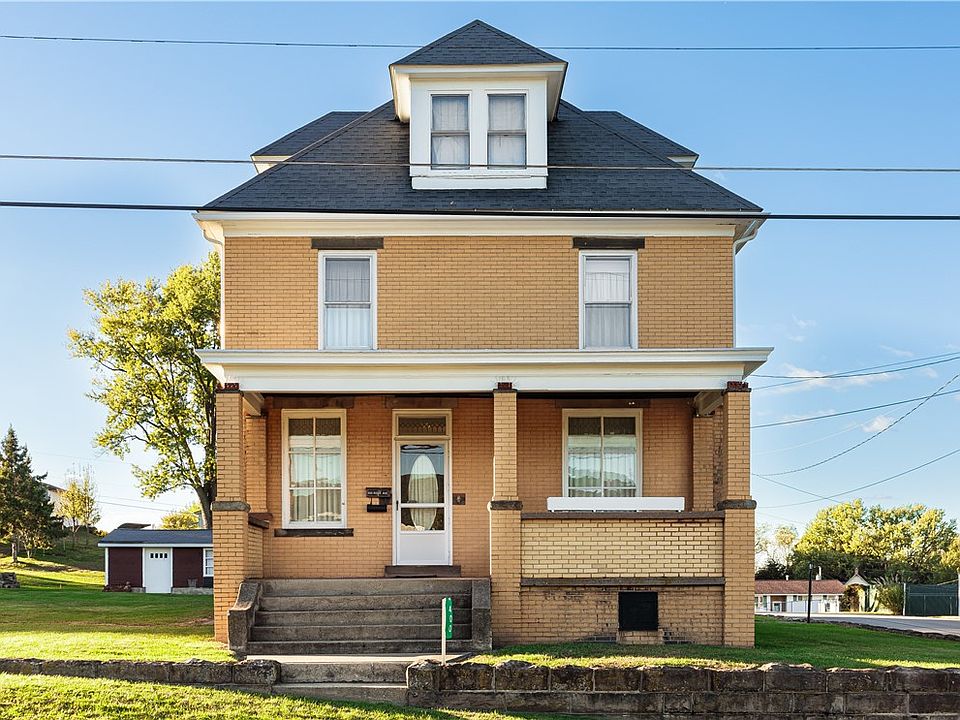 If you have an affinity for historical charm, you need to see this 1905 4 Bed 2 Bath all brick Farmhouse on a corner lot in Derry. Situated on a level lot with a detached 2 car garage and "chicken coop" outbuilding. Immediately you will be awed at the gorgeous woodwork on the doors. Enter on the covered front porch into the parlor room and admire the staircase with a lovely stained-glass window. to the right, is the LR with a decorative cast iron FP surrounded by ceramic tile and a wooden mantel. Through the pocket doors is a large DR w/built in China cabinet. Eat in Kitchen has a butler kitchen. Upstairs 4 nice size BR, and full bath with cast iron tub. Attic is finished, create 2 more rooms or use for storage. Basement is dry with newer boiler (7years) full bath, fruit cellar, and coal cellar. Roof replaced 10 years ago. Gorgeous light fixtures in parlor, LR, and DR. They don't build them like this anymore, don't miss your chance to tour this home.