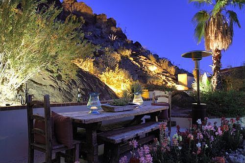 This luxurious Spanish Revival home is situated on a half-acre on the top of the historic Mesa neighborhood, Palm Springs' oldest neighborhood and popular escape in times' past for celebrities and executives of MGM Studios (Clarke Gable's former home is next door). This stunning property has been featured in two lifestyle magazines, Los Angeles' Luxe Interiors and Canada's Western Living and shows the pride of ownership of a family's own desert retreat. The space Safe from prying eyes, you'll take a winding, private road to the top of the neighborhood where you'll enter this Spanish Revival house through an electric gate. The home offers astounding South and East views of the nearby desert and mountains. To the North and West there is only the San Jacinto mountains for miles for a complete feeling of privacy. The pool & spa are surrounded by stunning terraced desert gardens, a lounge area and a shaded pergola, complete with a fireplace, full outdoor kitchen, and bar. Here, the mountain is your backyard and you may just be rewarded with the occasional visiting Bighorn Sheep. But you're still just minutes from the vibrancy of both south and downtown Palm Springs, with Mr. Lyons and The Ace Hotel both well under a mile's walk. This home has been renovated twice in the past decade and is the perfect place for a romantic getaway or a private family vacation, with four bedrooms and three and a half bathrooms. The property is covered in custom tiles and features handcrafted wooden floors, large casement windows, and solid doors. The home includes a tower entry, a large open room for entertaining and master suite featuring a spa-like bath. Additionally, there is a den with a fireplace, a spacious dining area, full media room, and an open chef's kitchen with contemporary details. Enjoy the custom built sauna to relax your muscles after a long day of shopping. City ID 3741 Long or Short term rentals
