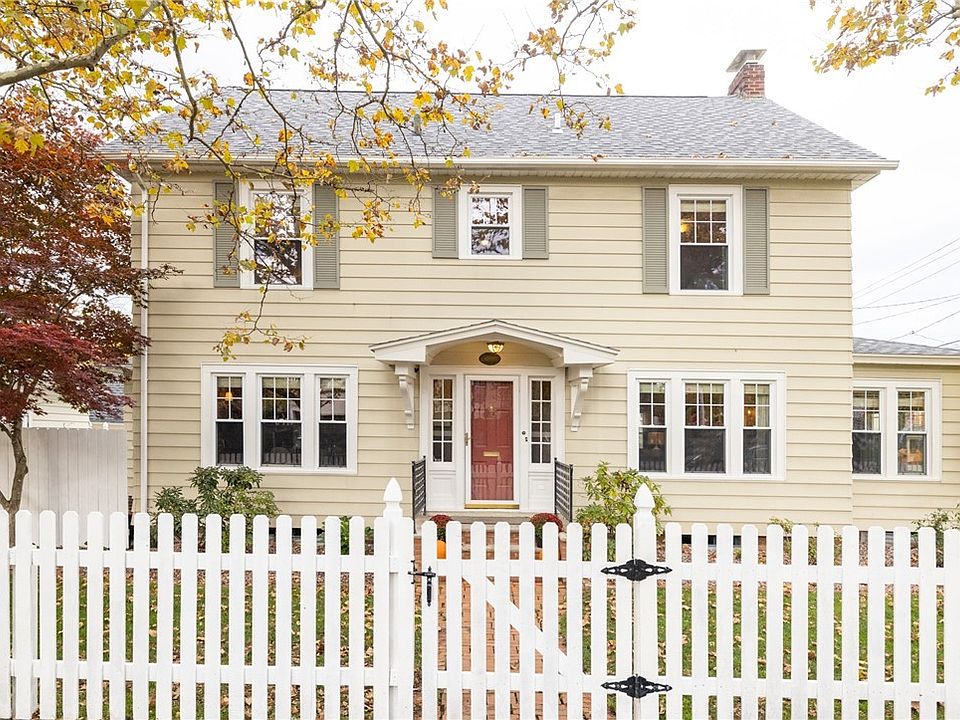3 bedroom, 2.5 bath colonial w/many unique architectural details. 100 yr old Londonplane trees & a white picket fence along the street provide charm & privacy. Solid panel doors, glass door knobs, oak hardwoods, generous windows for lots of natural light. Livingroom w/ charming woodburning fireplace. Spacious diningroom w/ room for ample seating. Original tile bathrooms. The east sunroom currently being used as at-home office. Primary bedroom w/ large closets w/ drawers. Secured courtyard & gardens. 2 car detached garage. Lovely Sedgwick neighborhood w/ sidewalks & tree-lined streets.
