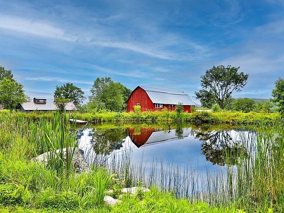 Wild Trails Farm offers unparalleled privacy, encompassing 436 acres of natural splendor. At the heart of this retreat is a 5,600+ sq ft lodge that is both luxurious and eco-friendly, powered by solar and geothermal. It features 6 spacious bedrooms, 4.5 bathrooms, a gourmet kitchen with dual dining areas, common rooms, and sauna. The 2-car garage is currently utilized as a yoga studio, but could be easily converted back. Whether you are relaxing on the stone patio with sweeping southern views or enjoying the cozy screened-in rear porch, you will find the perfect spot to savor the tranquil surroundings. The magical grounds include manicured lawns, two ponds, colorful gardens, and seasonal fruit and berry patches. A 20+ km trail network winds through the property, perfect for hiking, biking, snowshoeing, and cross-country skiing. The land includes many natural and historic features, including inspiring, long-range vistas and also connects directly to numerous trails, backroads and features off site. The property comprises several additional structures: a restored circa 1800 barn with a 2-bedroom apartment and renovated farm manager's room with bath; the Cider House, a delightful 1-bedroom post and beam residence; post-and-beam stable; and equipment barn. Other features include a greenhouse, raised garden beds, pretty stone walls, a remote 2-bedroom off-grid cabin with septic and well, and a treehouse with wood stove and views. A rare opportunity to own a truly majestic property