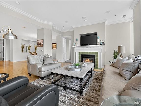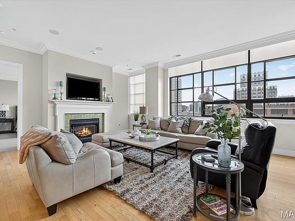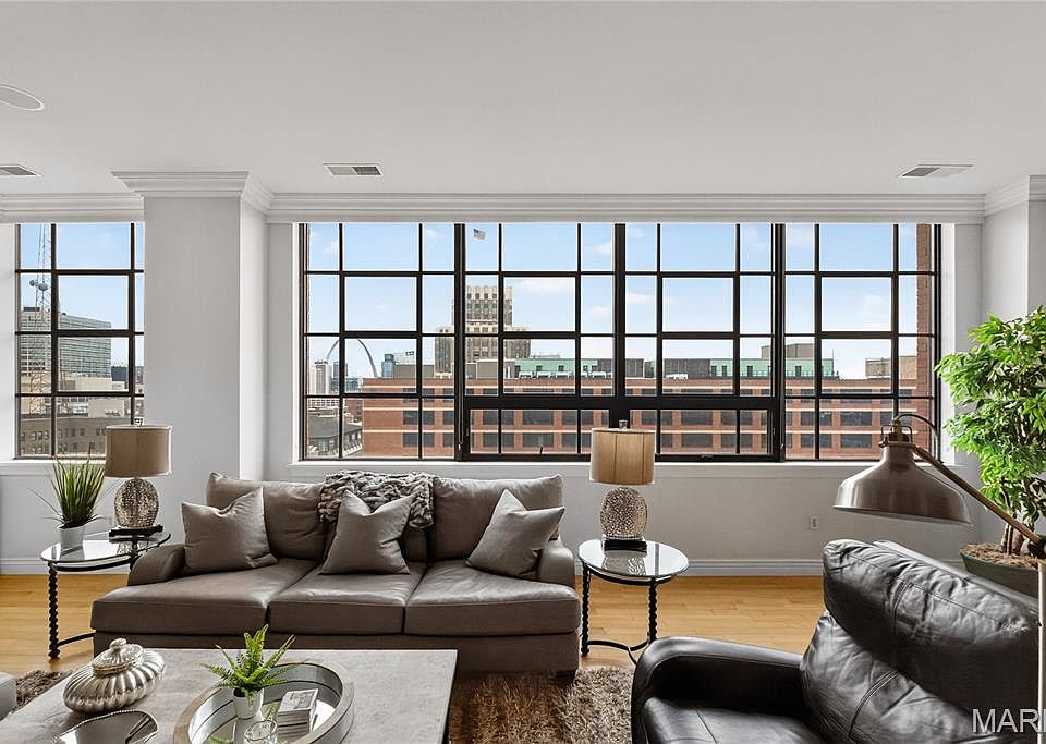 Experience downtown luxury living at its finest in this beautifully updated residence at the sought-after Edison Condominiums—truly one of the best locations in the city. Enter through a welcoming foyer into an open floorplan designed for both comfort and style. The gourmet kitchen features stainless steel appliances, dual ovens, custom cabinetry, a center island, and eat-in space, perfect for entertaining. Enjoy custom lighting, recessed fixtures, special millwork, and a cozy gas fireplace that adds warmth to the modern aesthetic. This unit is a showstopper with panoramic views of the Arch, Ballpark Village, and the Mississippi River, along with dramatic southern-facing vistas that flood the home with natural light. The spacious primary suite offers a spa-like retreat with a soaking tub, separate shower, dual sinks, and a large walk-in closet. The Edison offers unmatched amenities: private elevators, 24/7 security, two garage spaces, sundeck, fitness center, library, and extra storage. Located near the Sheraton Hotel and steps from all downtown attractions—this is upscale city living at its best.