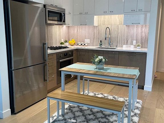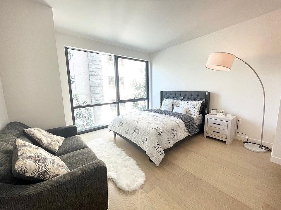 Fully furnished, modern cabinetry with lacquer and wood finishes. Kitchen features polished quartz countertops with full-height porcelain backsplash, convenient pull-down show kitchen faucet, and soft under-cabinet lighting. Kitchen appliances include brand new Bertazzoni microwave, refrigerator, and stovetop oven. Bathroom has designer-selected tile finishes, contemporary wood cabinetry, illuminated mirrored medicine cabinet, and polished chrome Kohler fixtures. In-unit stackable washer and dryer are also included. Tenants will have access to all of the amenities this community has to offer. Building is located within walking distance to Grand Central Market, Perch, Planet Fitness, The Last Bookstore, and many more! You're going to love living here! Water, trash, and gas are included with rent! Last month's rent due at signing. No smoking allowed. Up to two small pets permitted.