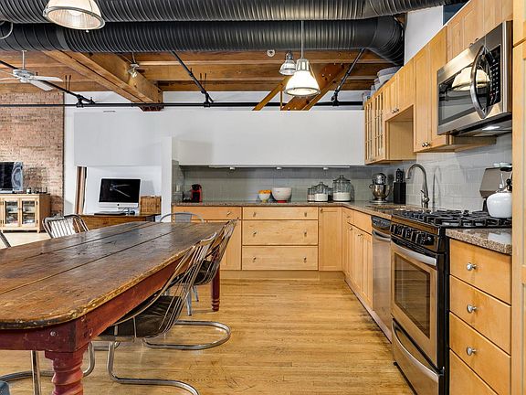Looking for a massive timber loft in the West Loop? This beautiful, 2800 sq/ft loft is one of the largest units available in the West Loop. Previous owners combined 3 units at Green Street Lofts, making this duplex up condo extremely unique. The unit's wall of windows let in a ton of natural light but provide a quiet and peaceful barrier from the hustle and bustle of city living. The open living, kitchen, and dining space is perfect for entertaining. The hardwood floors throughout, timber beams, exposed brick, and tall ceilings complete this unit. The large kitchen features custom cabinets, stainless steel appliances, and ample countertop space. There are two full bathrooms on the main level. The second level layout includes a utility room, a large workroom/office, and the master bedroom. The price also has a large garage parking space that can fit two mid-sized cars. Please keep in mind that this unit consists of 3 bedrooms. However, some reconfiguration by the buyer is required to make the 3 bedrooms fully livable.