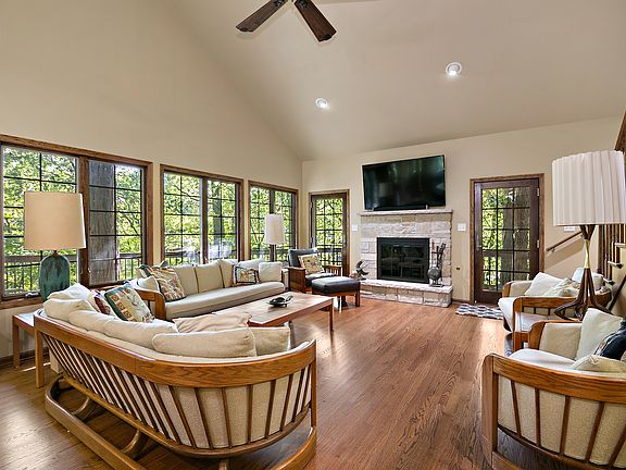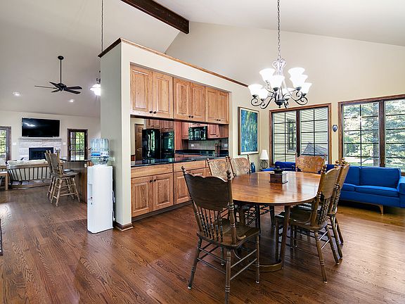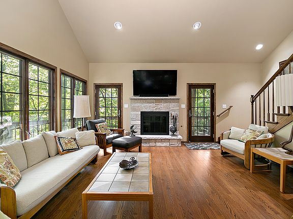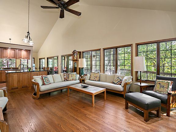 Wood burning fireplaceIroquois riverfrontOversized windowsDesigner kitchen spaceBreakfast barCathedral ceilingGranite counters