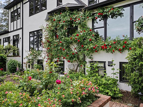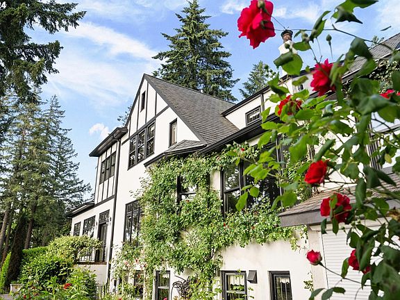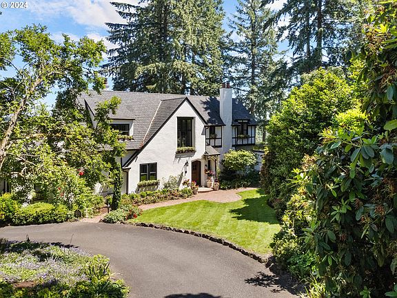 A romantic rose-adorned country villa sited on nearly an acre fronting the original Edgecliff loop created when Dunthorpe was a newly established neighborhood. Designed in 1935 by Harry Borland for Mrs. William Zimmerman, the residence was dubbed the "Mahogany House" for its exquisite millwork. Offering complete privacy and solitude, this magical residence surrounded by extensive gardens enjoys views of both Mt. Hood and the Willamette River.Decades ago the current owners engaged renowned Landscape Architect Craig Kiest to design grounds with a circular driveway, lush gardens & patio for the heated in-ground pool. Enter the mahogany front door into a central foyer with dramatic curved wrought iron staircase. An archway leads to the formal living room that easily accommodates a grand piano and is appointed with red oak floors, a gas fireplace and lead glass casement windows. Step through French doors to sun and dining rooms where Mt Hood is front and center. Classic black & white carrara marble kitchen and breakfast room view east through rose bedecked windows. The family room off the kitchen features a fireplace & plaster brocade ceiling.The upper floor consists of 3 bedroom suites with carrara baths and includes a primary wing.Lower level family room with a third fireplace & an entire wall of bookcases; ideal for a billiard or ping pong table.Additionally there are 2 exercise rooms & a half bath. Across the breezeway from the main house & above the 3 car garage are guest quarters.This airy space has a kitchen, full bath, cork floors & mini split for heating & cooling.Formerly an art studio, it is flooded with natural light. A country feel, yet minutes to downtown Portland & Lake Oswego.A few minutes walk to Riverdale Elementary School which serves as the center of the community with its park & playground.Near OHSU, Lewis & Clark College & Tryon Creek Park, the location feels worlds away with its sleepy solitude, birdsong & leafy lanes.Enjoy Clackamas County taxes.