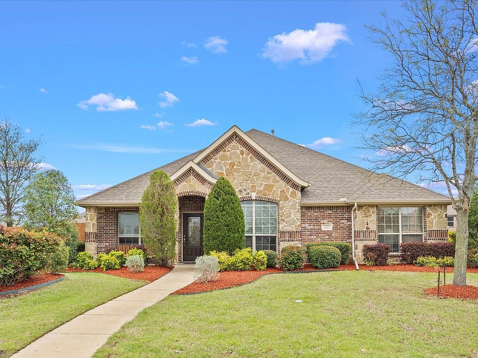 Don't miss this 1.5 story home located on a large corner lot. The backyard oasis is perfect for entertaining! Complete with sparkling pool & spa with water feature, cedar covered patios with CF's, built-in grill & egg, fridge, grassy areas & privacy fencing. Off the entry is split dining & study with french doors. Large kitchen with island, breakfast bar, granite counters & glass tile backsplash, gas cooktop and walk in pantry. Living room with FP & gas logs. Large primary bedroom is downstairs with ensuite bath & WIC. Two secondary bedrooms are also downstairs. Upstairs is a versatile space that could be a bedroom, game or second study with a half bath. Features include split bedrooms, crown molding, CF's, sprinkler system and a long driveway with side entry garage. Home was former model so garage has heat & AC! Convenient location to Forney shopping & restaurants. Buyer to purchase new survey.