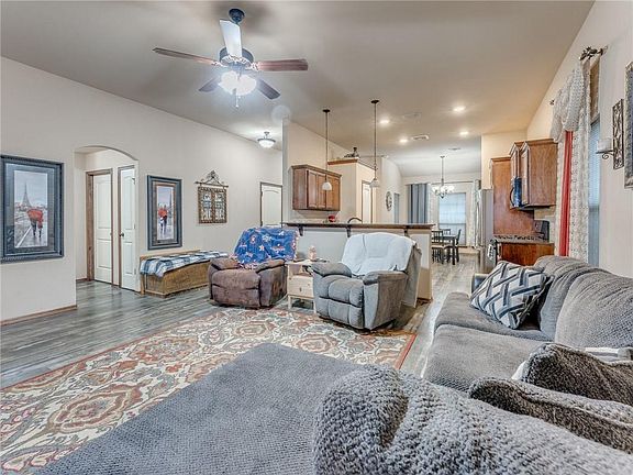 ***Multiple Offer Situation, highest and best due by 6 pm March 18th*** Beautiful, 3 bedroom, 2 bath, energy efficient geothermal home located in Yukon on large lot in a fun, quiet neighborhood. Living room and dining room offer open layout for entertaining. Spacious kitchen with lots of storage, breakfast bar, and quartz countertops. Master bath featuring his and her sinks, garden tub, and shower. Newly installed laminate wood flooring throughout home. Backyard features a covered patio, firepit, and separate enclosure for your furry friends. Enjoy this summer at the neighborhood splashpad and playground!