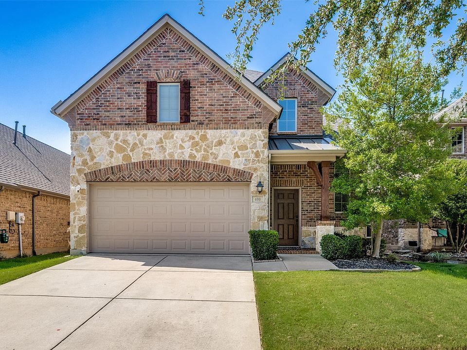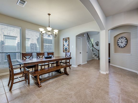 Gorgeous exterior with inviting curb appeal! Open-concept floor plan with multiple spacious living areas, wood floors, fireplace, and custom built-ins. Luxury kitchen features granite counters, stainless appliances, double ovens, and oversized island. Decorative lighting, vaulted ceilings and archways throughout. 1st level primary suite offers vaulted ceilings, separate shower and bath with plenty of windows and a walk in closet. Upstairs includes game room and media room with extra large closet. Oversized bedrooms and living areas keep this open floor plan spacious in all areas. Garage currently features climate controlled wall unit bringing functionality to the space. 2nd level Media room TV, the garage golf simulator screen, swinging mat, and projector will convey with an acceptable offer. Updated rock pathways keep any soggy and hard to grow areas away, artificial grass in backyard, extended covered patio and porch, and french drains. Located near top-rated schools, shopping, and dining. Move-in ready!