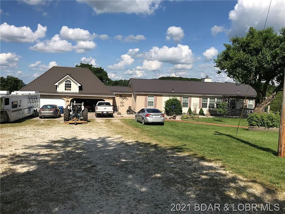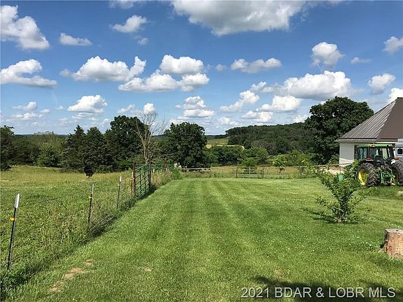 This is an awesome property! Only about .2m of level gravel off of State Road C gets you privacy but all weather access. Upgrades throughout in this one level living home, metal roof on the main buildings for longevity. 4 car attached garage has an upper storage level. Between garage and home is a safe room w heater, foot thick steel reinforced concrete walls, ceiling, floor. Large master suite, jetted tub, double sink, walk thru closet. Split plan, 3 bedrooms and an additional study with double sided fp shared w living room. 2 on demand water heaters, tile throughout, Quartz countertops and custom sinks, water saver toilets. Open kitchen plan w island, kitchen sink nice view out back! Fenced back yard great for pets! Several outbuildings, horse barn w loft for hay. Perimeter fenced and electric fencing separating 6 pastures. Don't forget the all weather stock waterers w underground water and elec. Hayfield and small lake! Extra home is storage, could be redone. More pics avail!