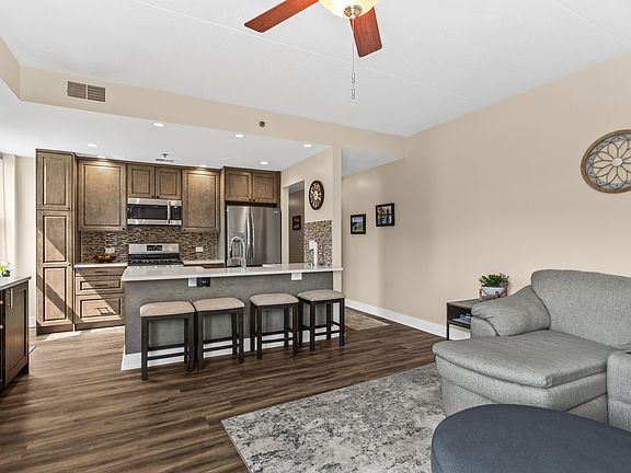 This is the one you have been waiting for! Thoughtfully updated 1st floor unit at Market Street Condominiums. This light & bright corner unit features a large living room, completely renovated kitchen with Quartz countertops and custom cabinets, built-in bar, spacious primary bedroom with en-suite bathroom and walk in closet. Nice sized 2nd bedroom and refreshed bathrooms round out this unit. In-unit laundry room. New windows and balcony door. Freshly painted throughout. 2 garage spots (rare!), additional storage in garage, and plenty of exterior parking. Elevator building with ButterflyMX buzzer system. Conveniently located with access to Heritage Corridor Metra right outside the front door. Picturesque neighborhood full of restaurants, breweries and miles & miles of scenic trails. Minutes to I-294, I-55, La Grange Rd. Move right in, drop your furniture and call this one "Home"!