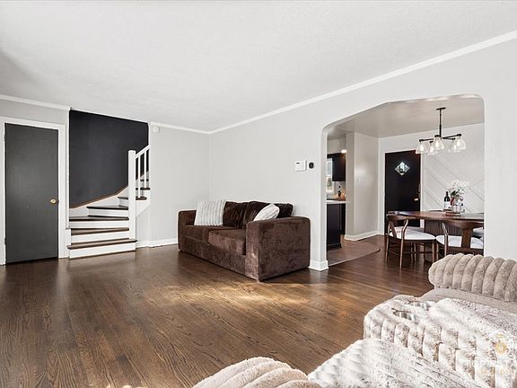 The 3 bedroom 2 full bathroom Georgian home you have been searching for! Immediately you are greeted with original hardwood floors that were recently sanded and stained with a dark finish. These refreshed hardwood floors transition up the staircase and throughout each of the three bedrooms located on the 2nd floor. The bathroom on the 2nd floor has a newly installed floating vanity, LED mirror, and jacuzzi tub. The bedrooms have new light fixtures, new blinds, freshly painted and are nice and cozy. The third bedroom has a Pinterest board closet system that can be removed. The main level features updated windows, bay windows in the living room, a separate dining area off of the kitchen, and a breakfast bar. The kitchen has a brand-new smart oven and microwave. Step down the stairs and enjoy plenty of space for entertainment. Here you will find a finished basement with a wet bar and full bathroom. The bathroom offers a spa like experience with the steam shower you don't want to miss. Updates also includes recent roof, updated furnace, central air with newly installed smart thermostat, and smart locks on the front and side door where you can scan your fingerprint for quick entry. This beautiful home with an oversized fenced in backyard and 2 car garage is conveniently located near the expressway, schools, parks, and shopping. Welcome to your freshly painted and cozy paradise!