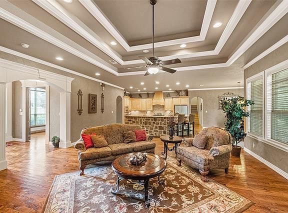 Exquisite Custom Home in Aurora Vista! 1-owner home on 1.21 treed acres with hand scraped hardwood flooring, triple crown molding, wainscoting, & amazing built-ins! The chef's kitchen offers maple cabinetry, built-in microwave, oven with warmer, & an x-large custom island. Massive living room, stone fireplace, oversized dining, & soaring ceilings! Upstairs features a guest suite, extra storage, spacious living or media, wet bar & french doors to exterior balcony! Beautiful trees off patio & a wide open space are perfect for a pool or garden. More trees towards back of property for add'l peace & privacy. Insulated, tinted windows offer amazingly low electric bills! Brand new AC & 1-yr old roof! A Dream property!
