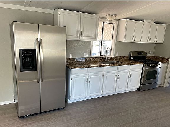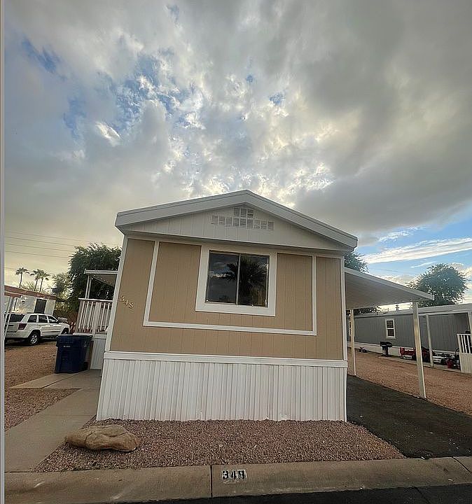 Beautiful single wide mobile home in ALL AGE Chaparral Village mobile home park. Newly painted interior and exterior, updated appliances, new laminate flooring, and refinished bathrooms. Win Mobile Homes 8670