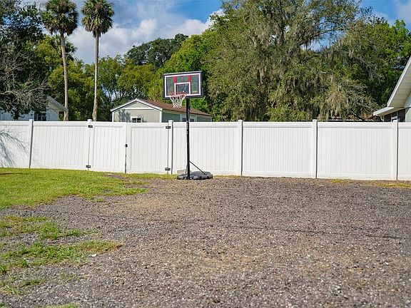 Assumable mortgage at an interest rate below 3.0% for a qualified buyer approved by lender. You will love this beautiful open floor plan 3 bedroom and 2 bath home that has been tastefully remodeled to include Kitchen and both bathrooms. The kitchen is a dream to anyone who likes to cook. Spacious granite counter tops, Farm sink, solid wood cabinets, some with pull out shelves. Stainless Steel appliances, Built-in wall oven & microwave, cook-top with range hood, dishwasher & refrigerator. Large Kitchen Island for prepping meals. The most beautiful backsplash to compliment this lovely updated kitchen. Gorgeous wood grain look ceramic tile through out the home. Dining room is open to the living room and kitchen making the perfect set up for entertaining. You'll enjoy the built in surround sound system in the living room. The Primary Bedroom is very roomy and offers plenty of storage in the walk-in closet. The En-suite bath has also been updated to include a spacious walk in shower. The home is a split floor plan with the other two bedrooms and guest bath located on the other side of home away from Primary Bedroom. Guest Bath was recently updated as well. The laundry room is a great size featuring a Samsung All-In One washer dryer, included with the home. The laundry room also has lots of cabinets for additional storage. The home is situated on an oversized corner lot fully fenced with Chainlink and vinyl fencing. Additionally off the Bonus/Mud room there is a great covered and screened patio for your outdoor entertaining as well as the open Brick Paver Patio. If storage is important you'll love the 10x20 shed. The circular driveway offers plenty of parking and easy access in or out of driveway. The parking also allows for RV parking with a 30 amp electric hook-up. The roof was replaced in 2019. Air Handler replaced in 2020. Air Condenser replaced in 2023. Septic System replaced in 2021. Updated interior plumbing. Plumbing repiped from the road to home in 2023. Electric updated by previous owners. The location is fantastic in walking distance to elementary school, restaurants, shops and even mini golf! Schedule your showing and come see for yourself all this home has to offer!