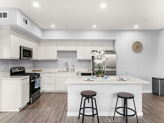 Welcome to your modern and stylish condo in the heart of Brea! Unit #307 is located on the top (third) floor—please note, there is no elevator. This beautifully updated home features an open floor plan flooded with natural light, an elegant living room, a dining area that leads to a private balcony, and a sleek white kitchen complete with stainless steel appliances and quartz countertops.