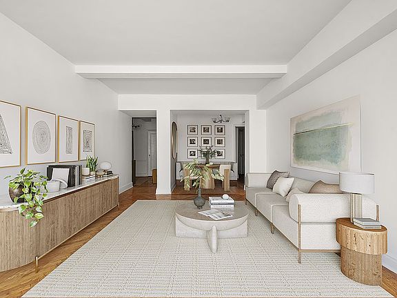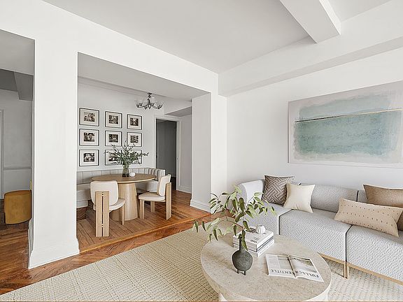 This oversized alcove studio offers the volume and proportion of a true one bedroom. Generously sized rooms and transitional spaces offer many opportunities for customization. Stand-out features include: deep and spacious south-facing living room with leafy views of the Apthorp, large dining alcove fit for formal eating or a murphy bed, large dressing area that can flex into a bedroom space, a windowed eat-in kitchen of a size more commonly found in 2+ bedroom homes ready for a chef's dream re-design, serene windowed bathroom, and an entry foyer perfect for working from home. Excellently preserved herringbone-pattern hardwood floors, moldings and beams tie together this pre-war gem.