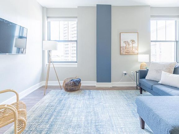 Experience the hustle and bustle of Downtown Des Moines in your own private retreat overlooking it all! Just inside the front door is the kitchen area that is fully stocked with a Keurig, pods, bottled water, toaster, plates, bowls, silverware, drinking glasses, wine glasses, utensils, pots/pans and more. Tons of storage in the closet areas in the entry area as well. There is also seating at the kitchen bar for meals, entertaining, working, etc. The living room has soaring ceilings with huge windows that showcase downtown Des Moines (there are privacy shades as well). The sofa is cozy with a large coffee table, comfy pillows, extra blankets as well as a side chair and smart TV that is ready to go for your streaming accounts or use some of the included options! The sofa is a hide-a-bed as well. A pack n' play and high chair are available upon request. Just off the main living area, you'll first find the bathroom that has shampoo, conditioner, body wash, extra towels, a hair dryer and more. This unit is situated at the end of the building, which offers a huge wall of windows in the bedroom, also with privacy/room darkening shades. The large, spacious closet has plenty of storage as well as a drying rack, ironing board, iron, laundry supplies and more. While I love all pets, certain dog breeds are restricted (Staffordshire Terrier, American Pit Bull Terrier, American Staffordshire Terrier, Akita, Rottweiler, Chow, Doberman Pinscher Mastiff).
