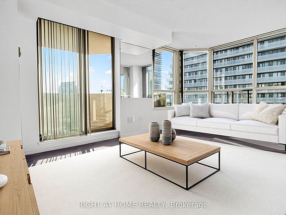 This stunning 1,275 Sq.Ft (per MPAC) corner unit condo in the heart of downtown Mississauga offers a bright and spacious split 2-bedroom layout plus a solarium/den, perfect for modern living. The open-concept living and dining room features a walkout to a beautiful balcony with incredible views, while the lovely kitchen boasts stainless steel appliances, quartz countertops, undermount sink and a cozy breakfast area. The spacious primary bedroom includes a walk-in closet and a 5-piece ensuite with a separate shower, and the second bedroom offers a double closet with access to a 4-piece bath. Upgraded quartz counters in the baths. With lots of storage, an ensuite laundry with front-loading machines. *** Bonus 2 tandem parking spots that fits 4 cars, plus a locker. *** Residents can enjoy the well-maintained buildings amenities, including a gym, indoor pool, sauna, party room, billiard room, squash and racquetball courts, a tennis court, and beautifully landscaped grounds with plenty of visitor parking. Ideally located steps from Square One, Celebration Square, the library, shopping, transit, entertainment, and major highways, this condo is an absolute must see, with heat, hydro, and water included in the maintenance fees. ** Digitally staged for illustration purposes only.**