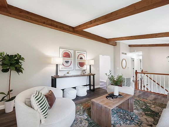 The property includes 4 spacious bedrooms, 3 full baths, newer flooring, fresh paint, and updated lighting. The living room features a vaulted ceiling with wood beams, while the updated kitchen includes quartz countertops and stainless-steel appliances. The primary suite offers a private full bath, two walk-in closets, and direct access to the deck. The finished lower level is perfect for entertaining and includes a fireplace, a full bath, a wet bar, and a walkout to the exterior.